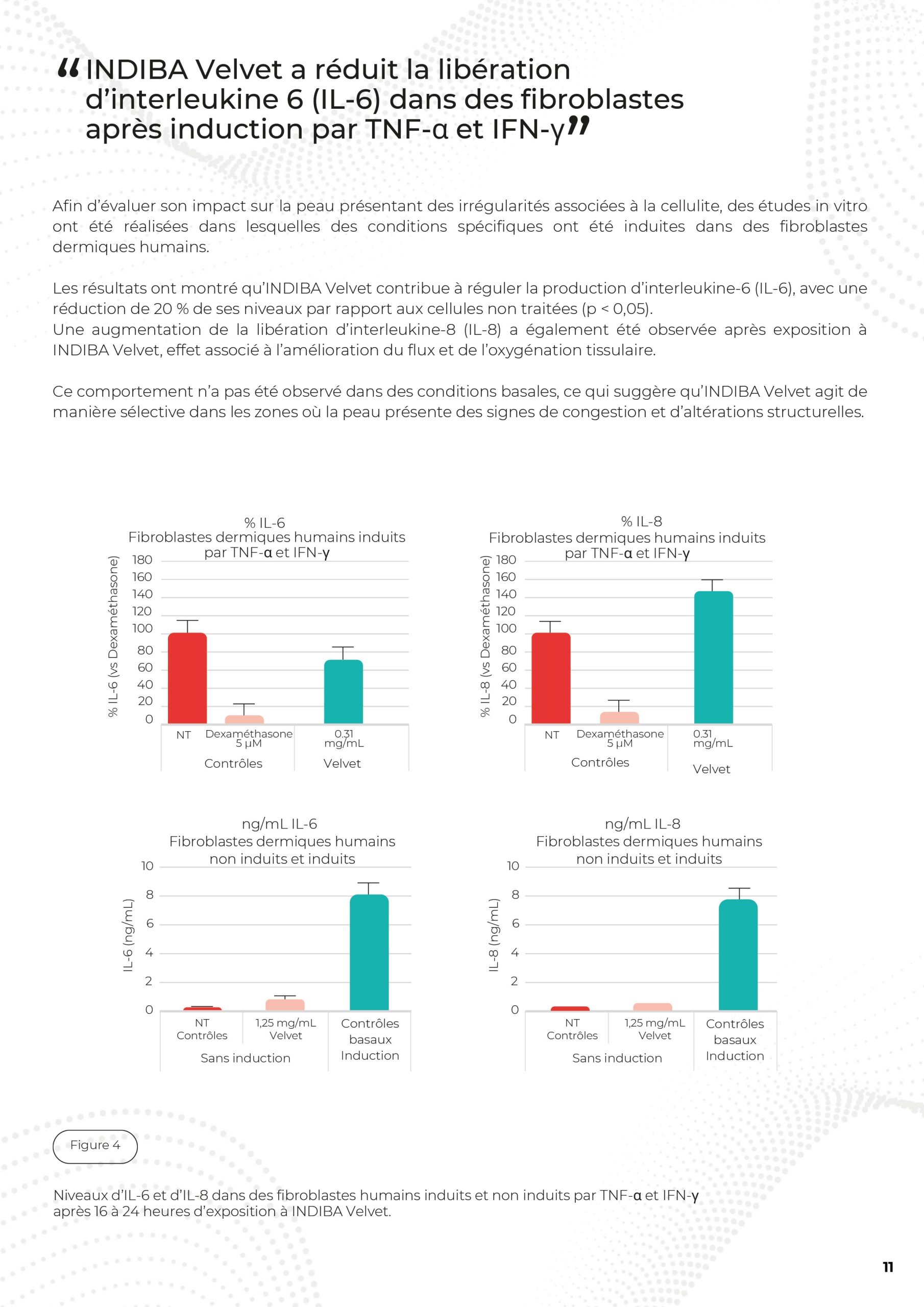 INDIBA Velvet a réduit la libération d’interleukine 6 (IL-6) dans des fibroblastes après induction par TNF-α et IFN-γ
